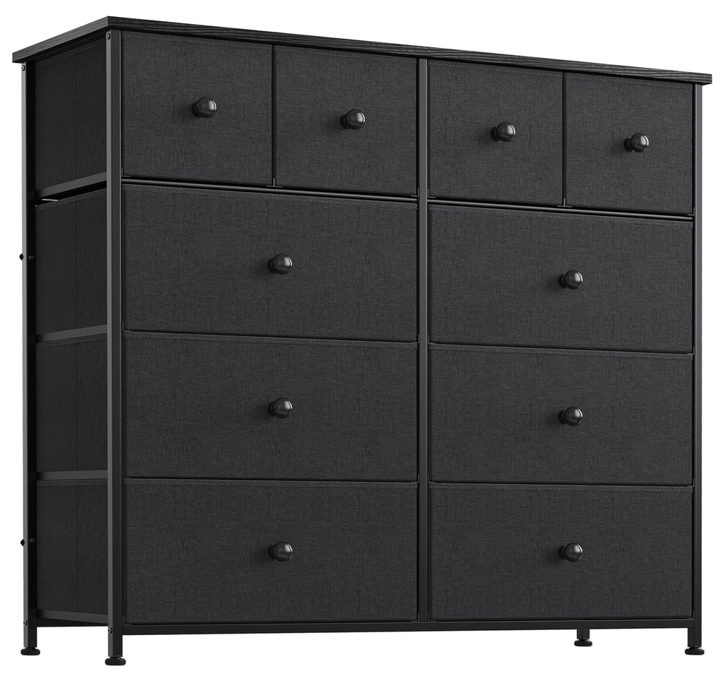 REAHOME 10 Drawer Dresser for Bedroom Fabric Storage Tower Black Dresser with Wood Top Sturdy Steel Frame Storage Organizer Unit