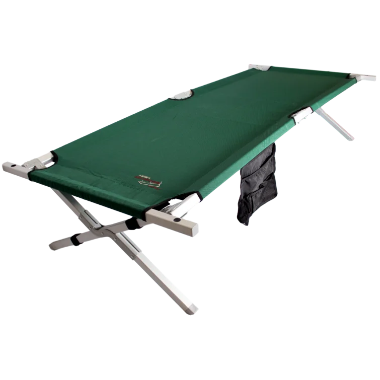 The Maine Military Cot is the Byer Of Maine largest and strongest cot model. The design represents the culmination of long experience in refining the design of military style cots. The Maine Military is crafted with a full 1.25" square aircraft aluminum tubing further reinforced with steel tubing inside the three leg sets. The strong ripstop polyester fabric is treated for water repellent and is reinforced along the center of the sleeping surface. The cot also features a generous gear pouch with multiple pockets. This heavy duty cot has been strength tested to a capacity of 1,100 pounds, and has a conservative working weight capacity of 375 pounds. The Maine Military is the ideal solution for emergency preparedness when large size and high strength are necessary. Supplied with a shoulder strap carry bag.