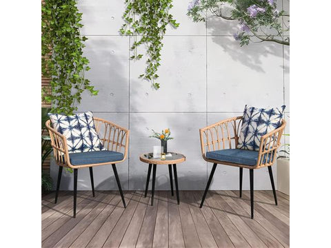 3 Pieces Outdoor Wicker Bistro Set Rattan