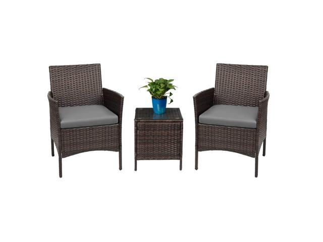 Patio Porch Furniture Sets 3 Pieces PE Rattan Wicker Chairs with Table Outdoor Garden Furniture Sets (Brown/Grey)