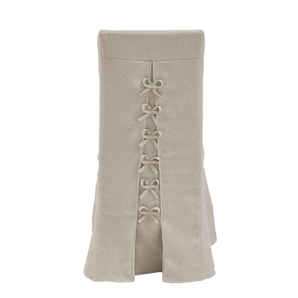 Create a high-end dining experience with this set of two upholstered Parsons chairs with covers by Muses. The covers have pleats and bow ties down the back to help them fit securely to the chairs. Constructed from fabric and rubberwood, these chairs are long-lasting, sturdy, stable, and durable for years of use.