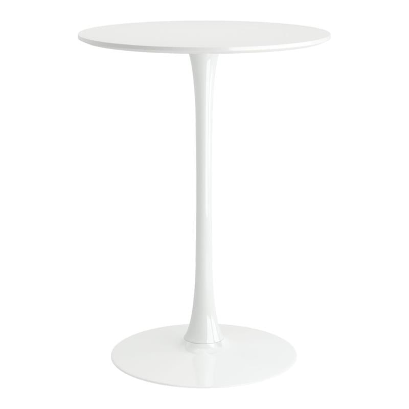 Inspired by the original design the rose bar table is one of the most popular, and certainly one of the most beautiful pieces in our mid-century collection. The table features a round laminated wood top and a lacquered metal base. Its compact size has space for up to 3 to 4 stools.
