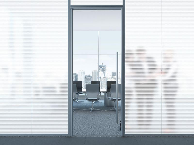 White Frosted Mini Blind White 3/4" horizontal lines fading to clear on frosted embossed vinyl. Good Privacy! Ideal for obscuring direct visibility and allows excellent light transmission.