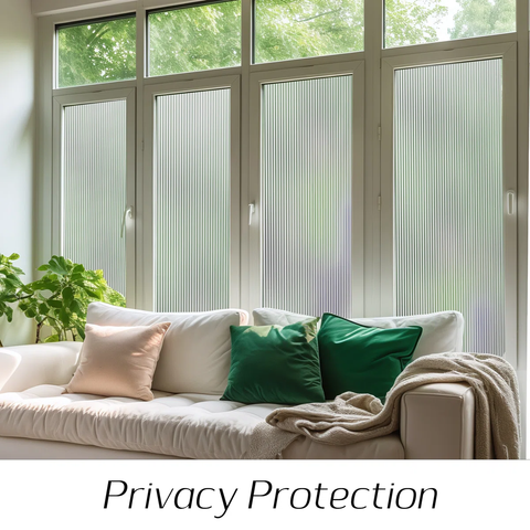 Transform a simple window or any glass surface into a focal point with this patterned privacy windowfilm. Mimicking the look of reeded glass, this window film is a classic striped pattern static cling window film that works with any glass surface. It has a lovely subdued line design that establishes privacy, while still allowing naturally refracted brightness. Crafted from high quality vinyl, the self-adhesive material is compatible with any glass surface and it's water-resistant so that it can be used on indoor and outdoor surfaces. Designed for reuse and non-damage, you can take this window film down and hang it again until you find its perfect place. Easy to install as well as easy removal. If you're looking for an inexpensive way to add elegant privacy to your windows and doors, then this reeded glass home privacy window film is your solution. Ideal for residential and commercial locations where you really don't want anyone to see inside. *INSTALLATION TIPS: Before installation, please totally clean the window surface and corners to ensure that there is no dust on it. Remember to remove the protective backing film before applying and spray plenty of water onto the glass surface and static cling side of the window film for adhesion(the more water, the better). After installation, please trim the edges and leave enough gap between the edge of the film and the window to easily squeeze out the air bubbles.*