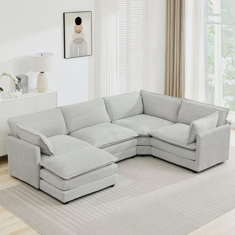 HYLEORY U-Shaped Sectional Sofa , Indoor Furniture Convertible Modular Corduroy Sectional Sofa Set with 2 Ottomans for Living Room