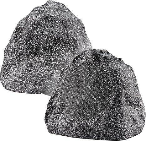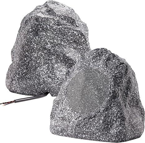 - OUTDOOR GRANITE GREY WIRED ROCK SPEAKER SET - Rock the yard with these outdoor passive 2-way rock speakers, durable and weatherproof against rain, snow, salt, ice, pool chemicals and more