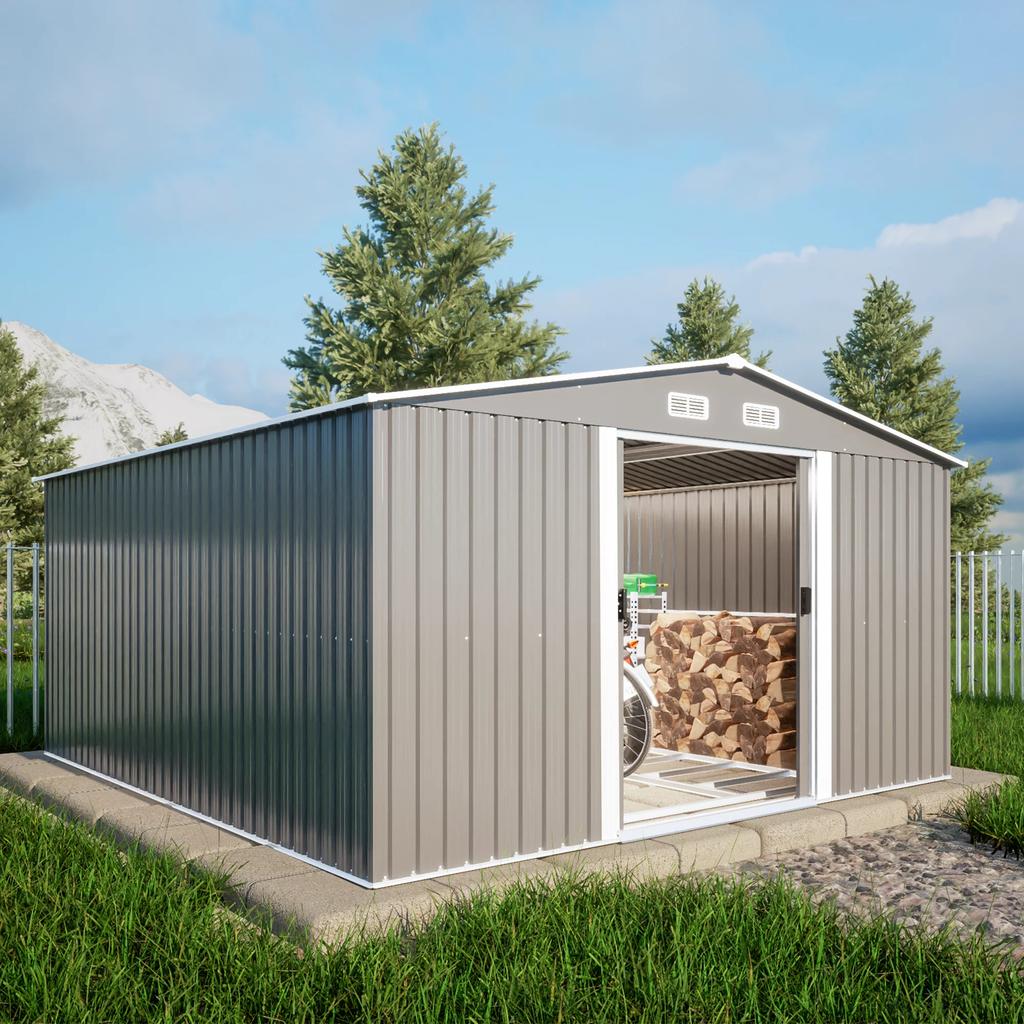 11 x 13 ft. Outdoor Storage Shed,Galvanized Steel Garden Shed,Metal ShedsGarden Tool Shed with Double Lockable Sliding Doors for Backyard Patio Lawn,Gray