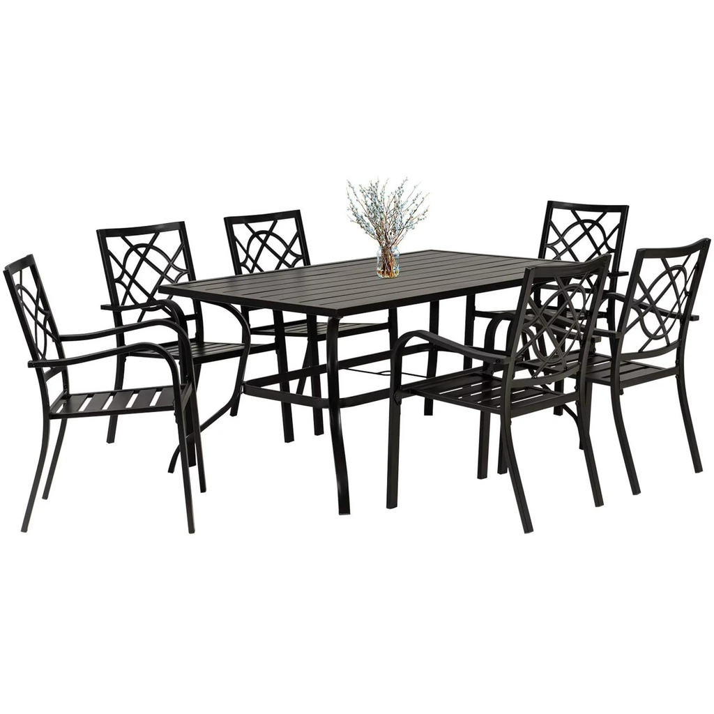 7-Piece Patio Furniture Outdoor Dining Set with Patio Stacked Metal 6 Chairs Black