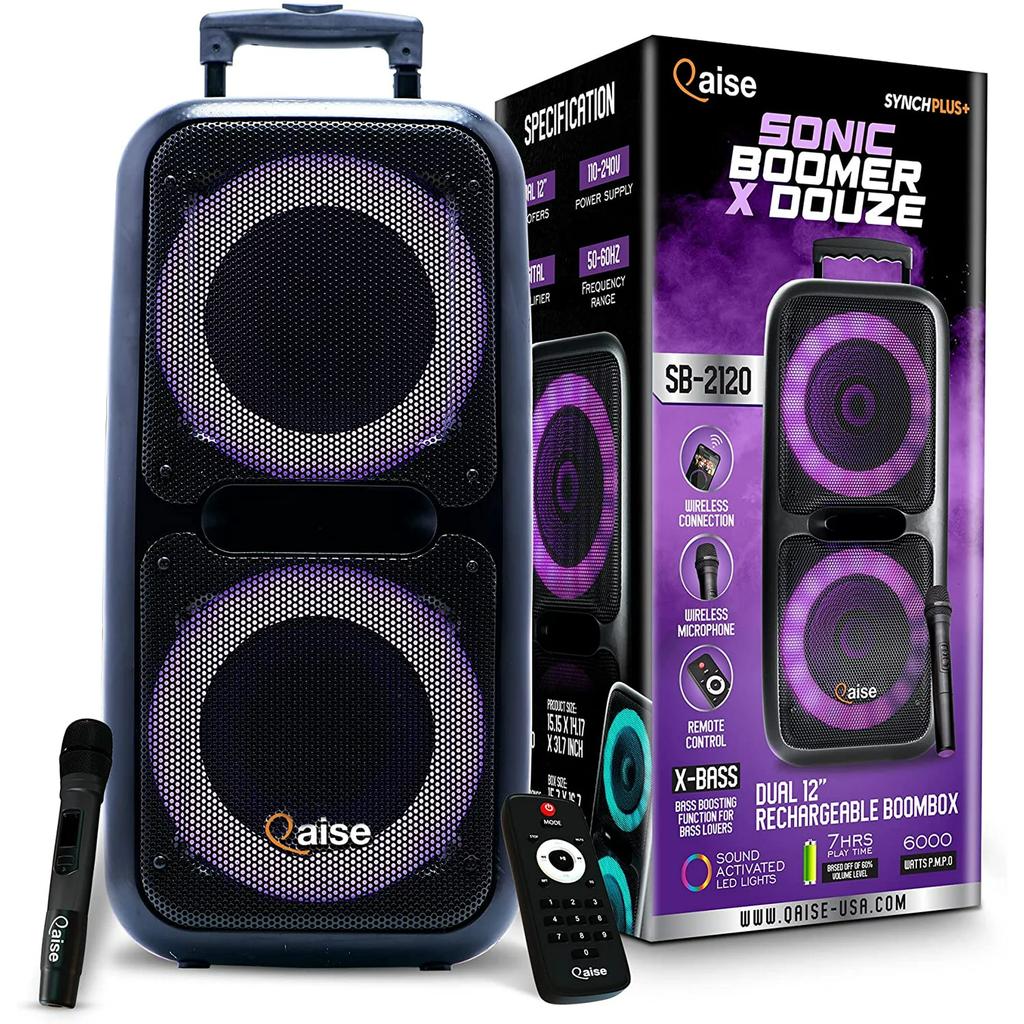 Qaise Portable Bluetooth Party Speaker, Dual 12” Woofers, 6000 W, X Douze