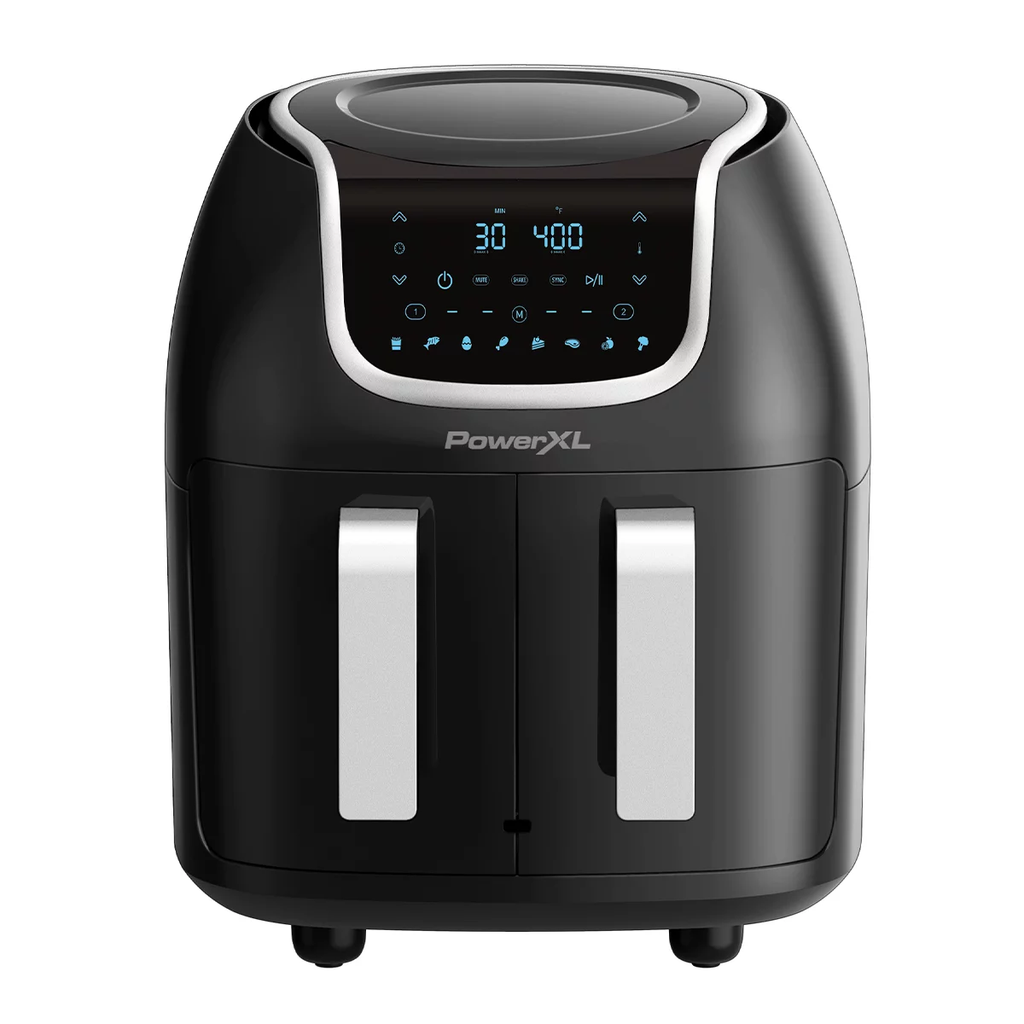 PowerXL Dual-Basket Vortex Air Fryer Pro 7-in-1, 9 qt. – 2-Basket Air Fryer or 1 XL Family-Size Basket Capacity, SmartSync Technology, 2 Nonstick Crisper Plates, Black
