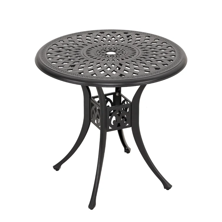 A classicpiece, this cast-aluminum bistro table is perfect for your patio, backyard or garden. Durable & yet easy to move around, you'll get absolutely comfortable using experience. Perfect for entertaining or relaxing with your friends & family. The beautiful lattice-weave design adds an elegant touch wherever it's placed. For sunny days, place an umbrella in the middle to keep cool. It will look beautiful in any outdoor settings