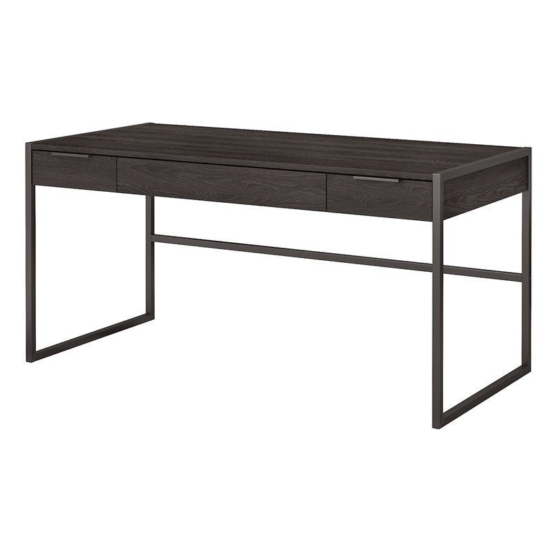Enjoy an appealing blend of industrial and modern designs when you build your personal workspace around the Office by kathy ireland® Atria Writing Desk with Drawers. The 60W x 30D surface is scratch-resistant and supports up to 200 pounds. Spread out with a computer, paperwork and more while taking on your next project or assignment and take advantage of the office desk's built-in storage to keep materials organized. A full-extension center drawer makes an ideal keyboard tray and can also be used to store a laptop, tablet or sketch book. Two box drawers accommodate smaller items like writing utensils and notepads so the supplies you need are never out of reach. All three drawers are built with smooth ball bearing slides for effortless opening and closing. This modern computer desk is tested to meet ANSI/BIFMA standards for safety and performance and is backed by a 6 Year Warranty.