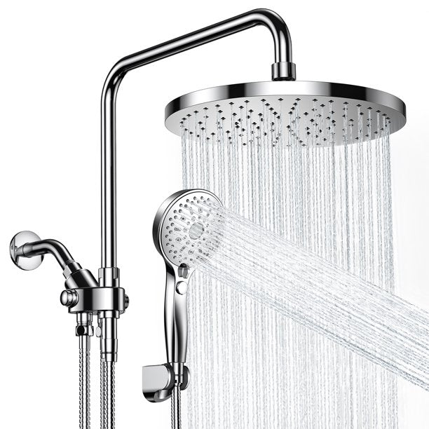 Enjoy a luxurious and comfortable shower with the AmbiCasa high-pressure dual shower head combo. The 10'' large round rainfall shower head and 12-spray setting handheld showerhead provide 3 different shower modes (rainfall, handheld, rainfall+handheld), allowing you to customize your shower experience. The multiple chrome finishes help keep the waterfall shower head and handheld shower head combo looking new for a longer time and make it less prone to breakage or damage. Furthermore, the shower head combo is easy to install and requires no plumber. This dual shower head set makes your bathroom look luxurious and stylish, very suitable for different styles of bathrooms, and also a perfect gift for anyone who love shower.