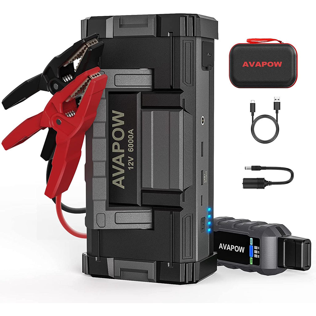 - Powerful Battery Starter - This AVAPOW A68 car jump starter provide up to 6000A peak current and high capacity.It can safely start all Gas engines and diesel engines.Suitable for all (12-Volt) car, truck, motorcycle, boat, RV or tractor ATVs, UTVs, lawnmowers, snowmobiles, etc,meanwhile it's ultra lightweight and portable.
