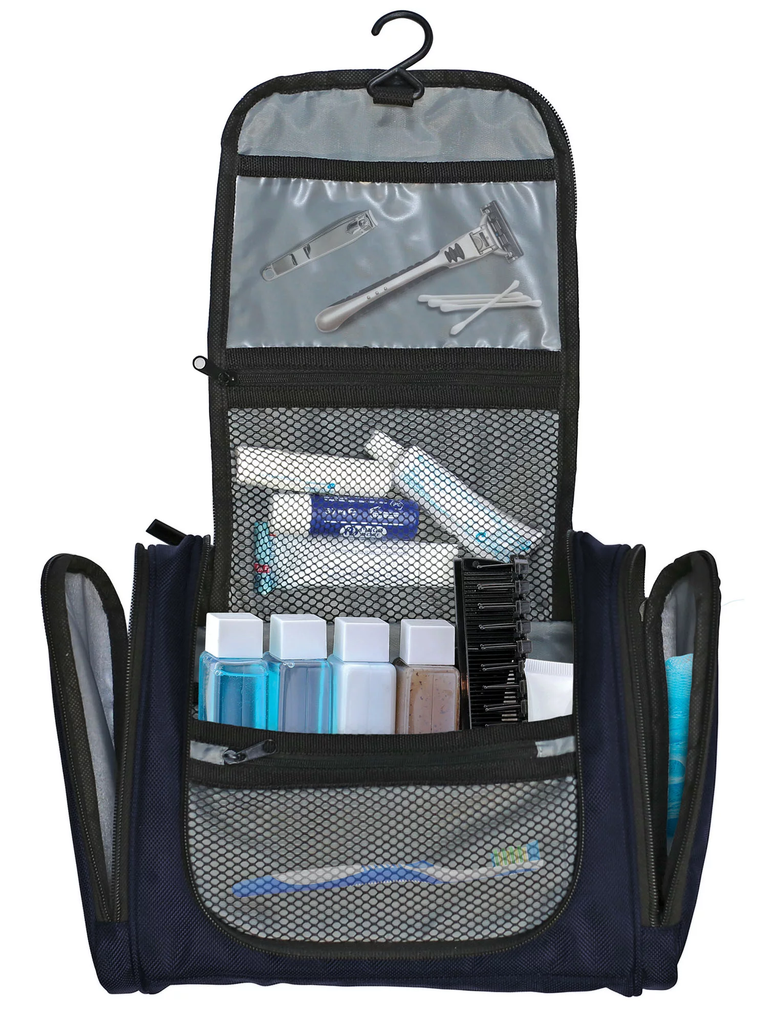 - This multi-functional hanging toiletry bag comes with a large main compartment with a mesh divider and multiple organizational pockets