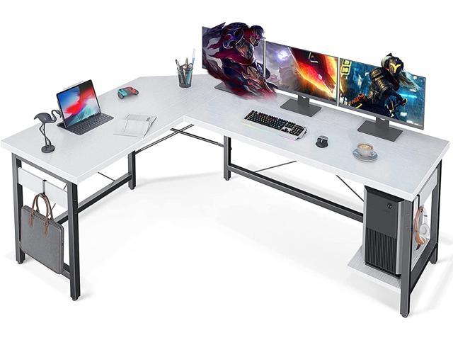 - The legs of the L-shaped computer desk have two diagonal braces to ensure the stability, with an iron hook to hang your headphone. The strong steel frame ensures the maximum durability and stability, and can hold up to 220 lbs. Steel legs and adjustable leg pads keep the L shape table stable on uneven floors.