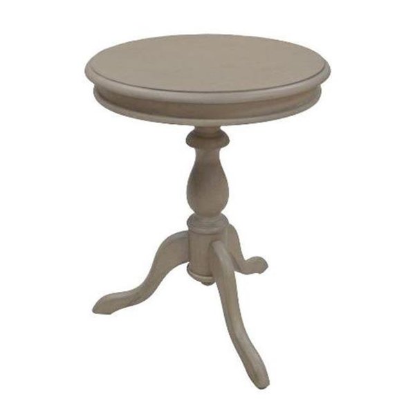 Classically designed, this side table's versatile styling will be a beautiful complement to any roomSmall Enough to fit every roomLathe-turned pedestalMinimal assembly requiredBeautiful Multi step hand finish with rubbed edges for a worn unique look.Finish - Weathered Gray