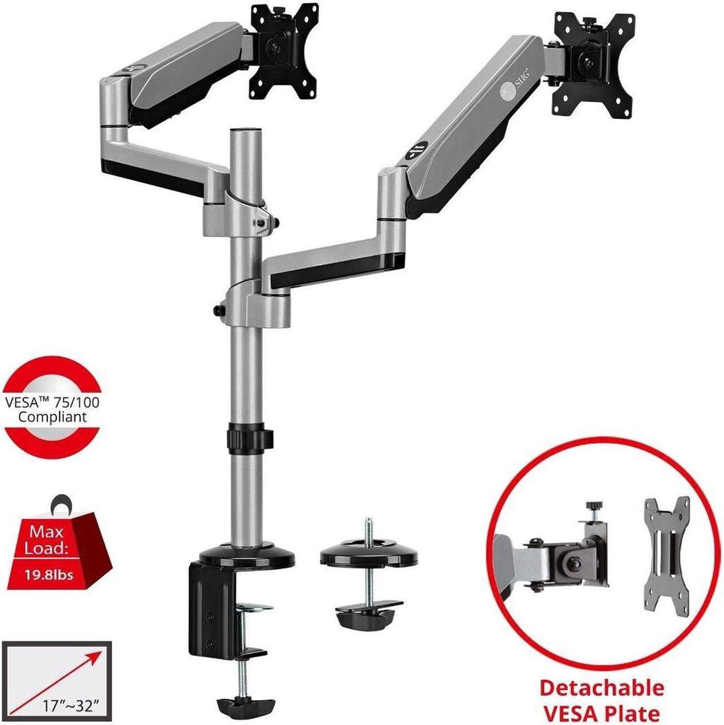 - Product Description: SIIG Dual Stacked Monitor Arm Desk Mount - 17" - 32" - Max Load 19.8lbs each - VESA 75/100mm mounting kit - for 2 LCD displays - 9 kg each, VESA 75/100 mm - silver,