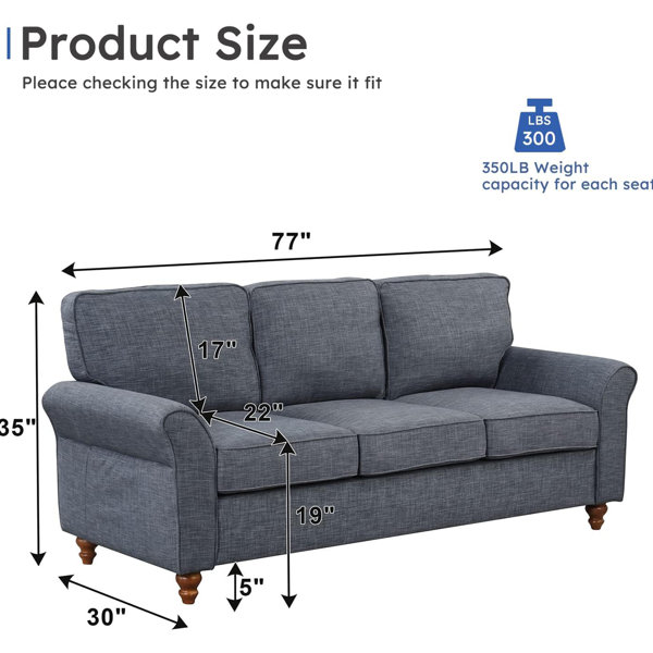 - Spacious Seating: With a generous width of 77 inches, this three-seat sofa provides ample space for family and guests, or for you to stretch out and unwind.